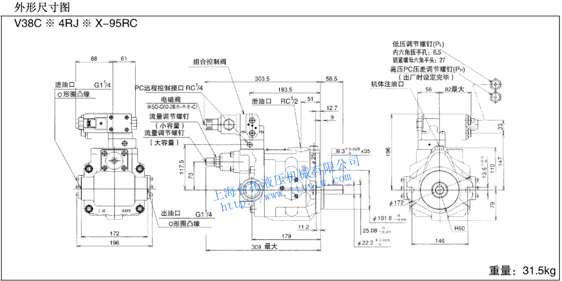 變量柱塞泵V38SA**RX-95尺寸圖下載 變量柱塞泵V38SA**R-95尺寸圖下載