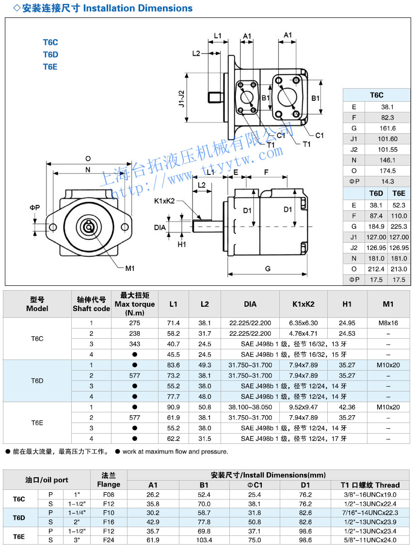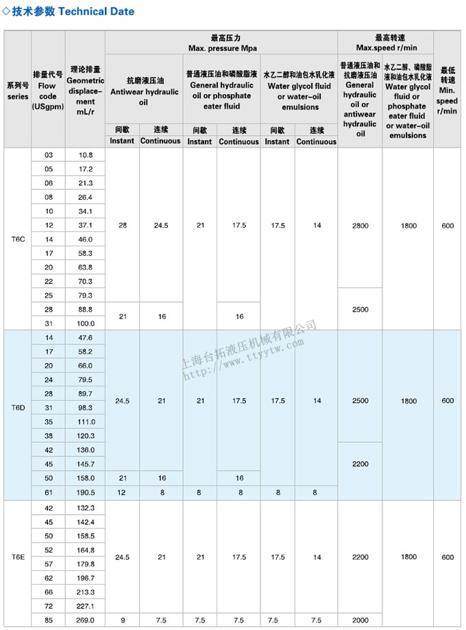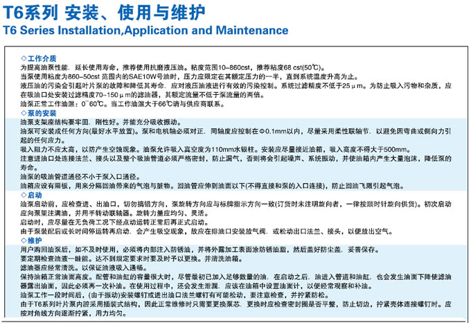 高壓葉片泵T6系列其排量范圍為10.8~269mL/r,高壓力可達280bar。應用于塑膠機械、壓鑄機械、冶金機械、煉油機械、壓力機械、工程機械、船舶機械以及各類液壓系統等領域。