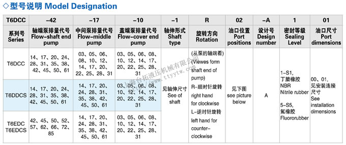 三聯葉片泵T6系列型號說明