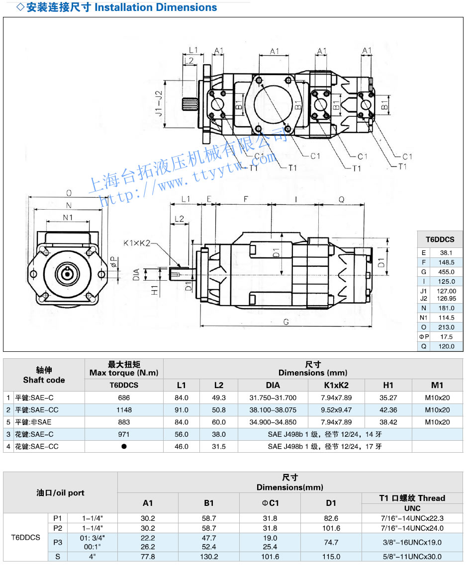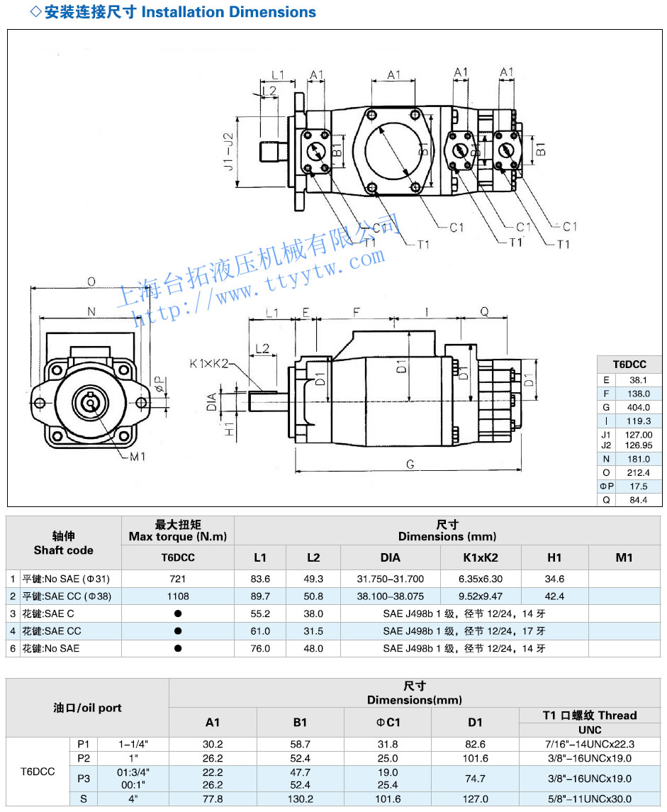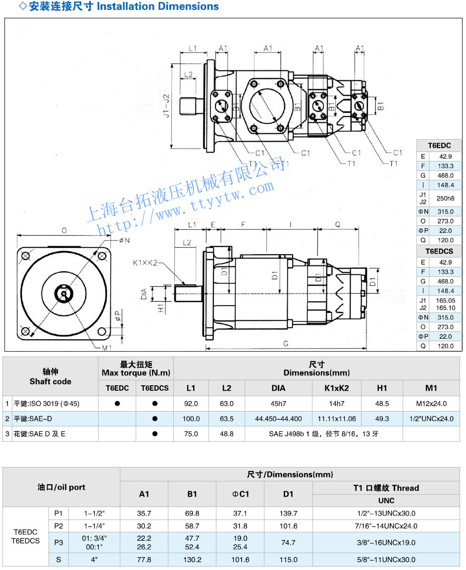 三聯葉片泵T6系列安裝連接尺寸