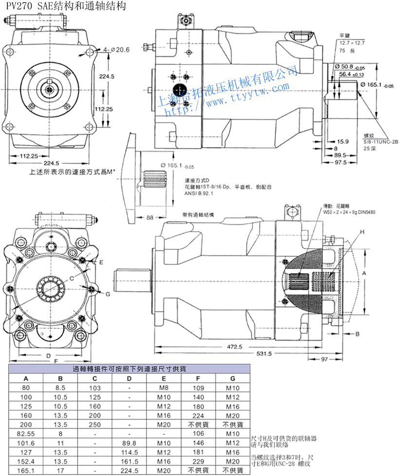 高壓變量柱塞泵PV270公制結構下載 高壓變量柱塞泵PV270,SAE結構和通軸結構下載