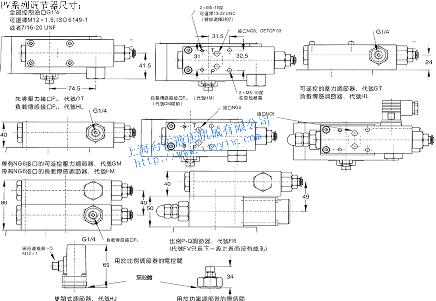 高壓變量柱塞泵PV016~PV270調節器尺寸
