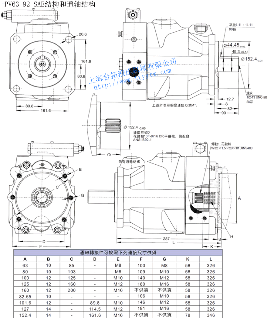 高壓變量柱塞泵PV63-PV92公制結構下載 高壓變量柱塞泵PV63-PV92,SAE結構和通軸結構下載