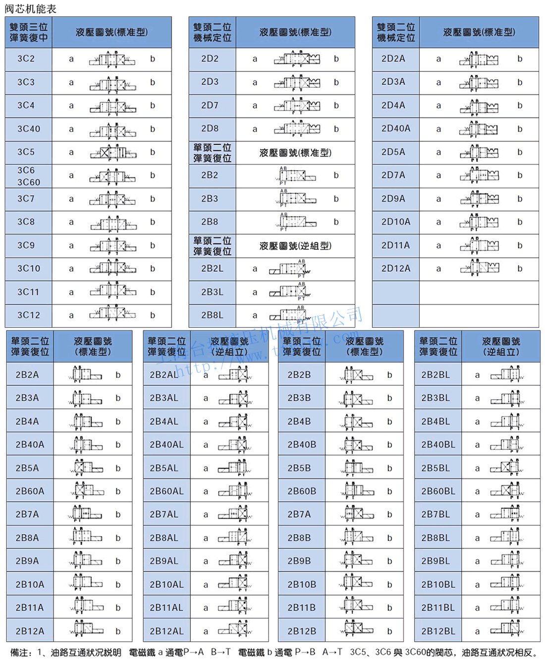 電磁換向閥D4,D5常用閥芯機能表