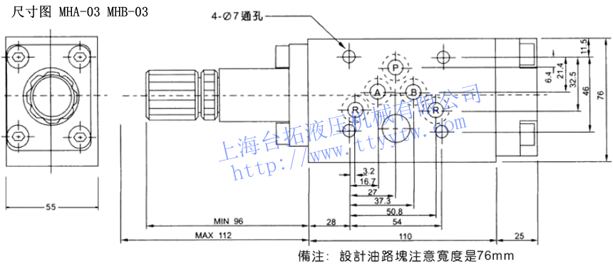 疊加式抗衡閥MHA,MHB尺寸圖