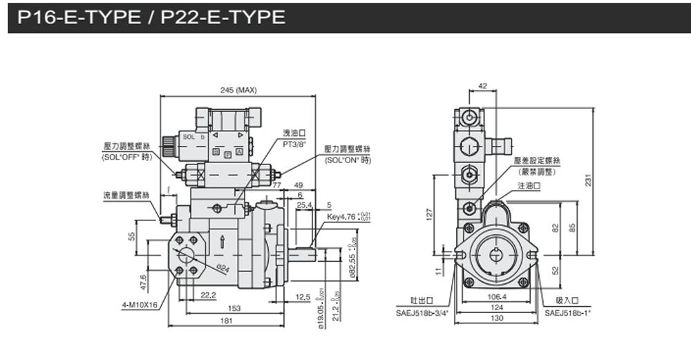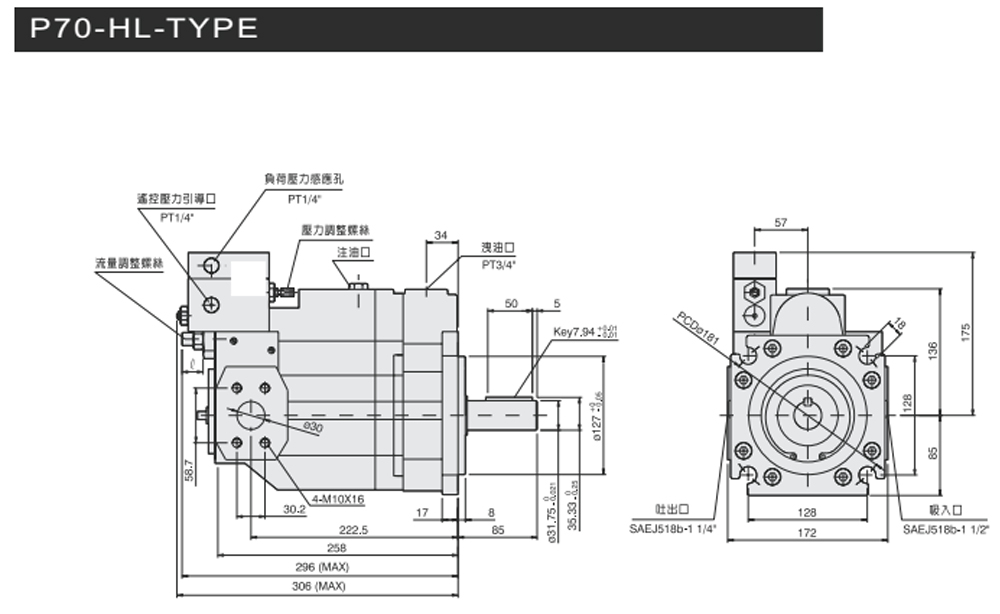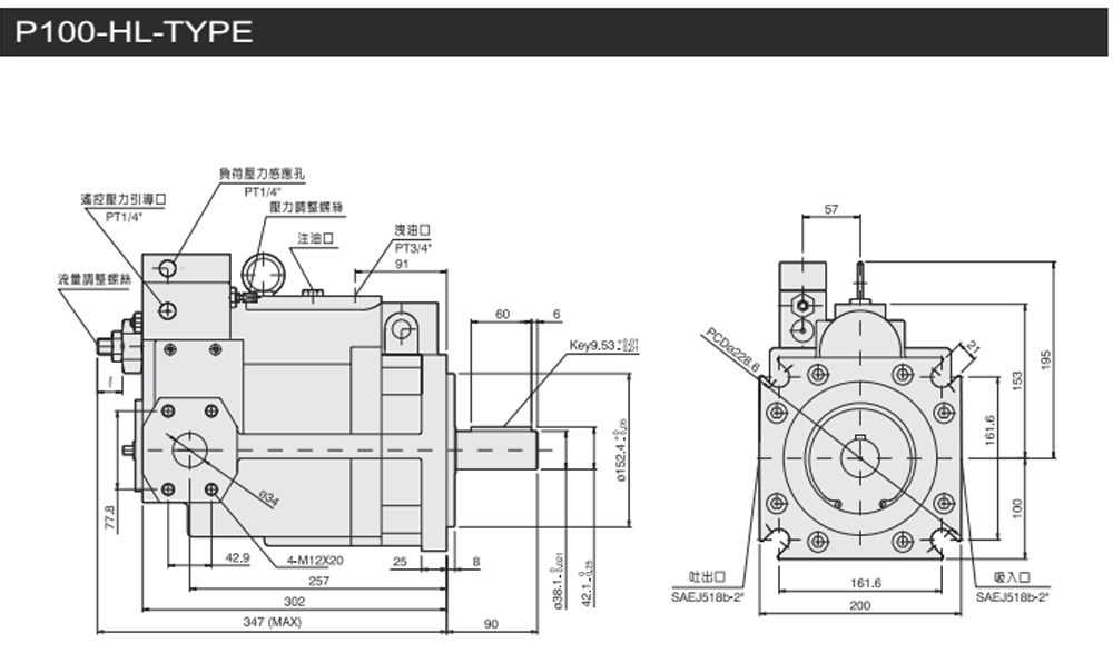 S:SAE花鍵01 變量柱塞泵P08~P100規格表