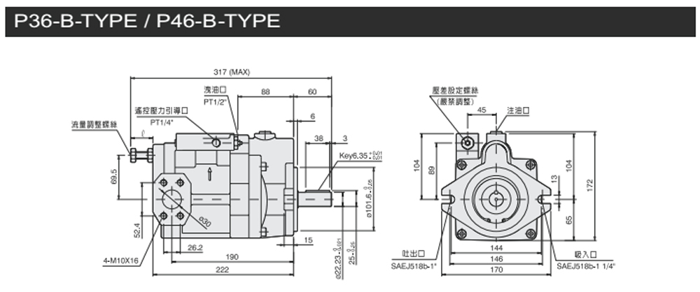 變量柱塞泵P系列壓力補償控制型尺寸圖