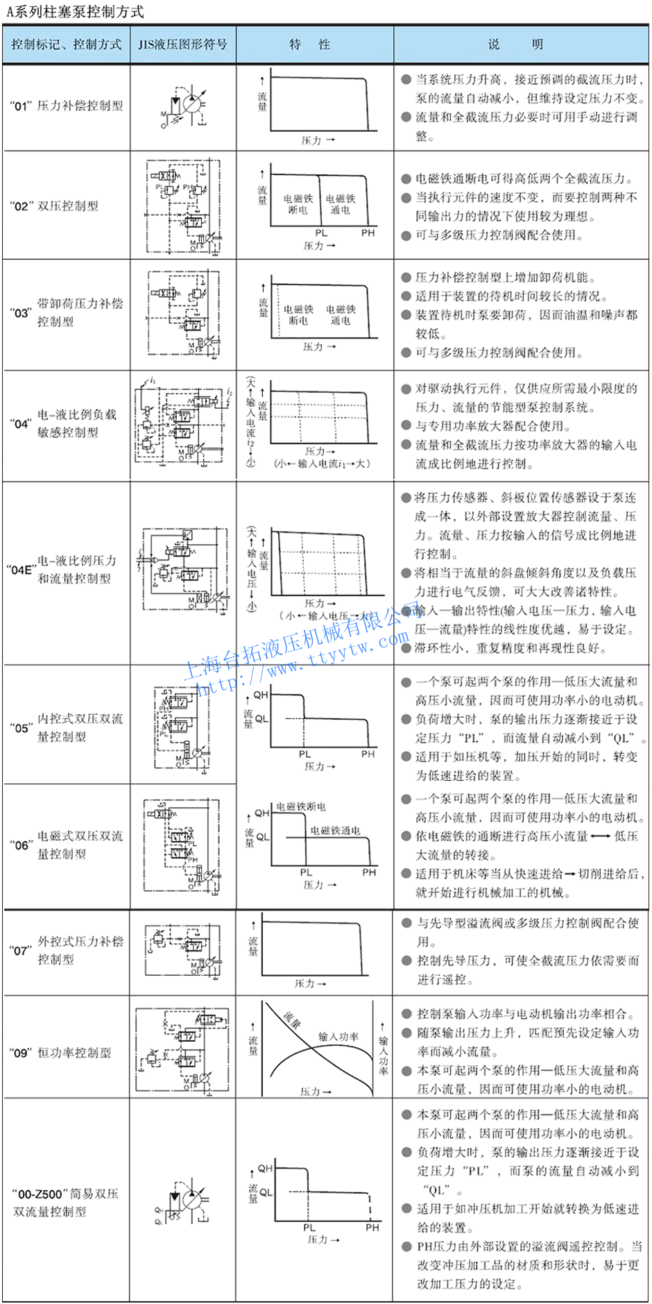 變量柱塞泵A規格表
