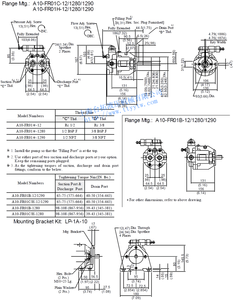 (145cm3/rev)60 備注:1、A10型變量柱塞泵使用底座安裝型時,請注明支架組件LP-1A-10-10型號訂購。2、可提供逆時針旋裝變量柱塞泵。